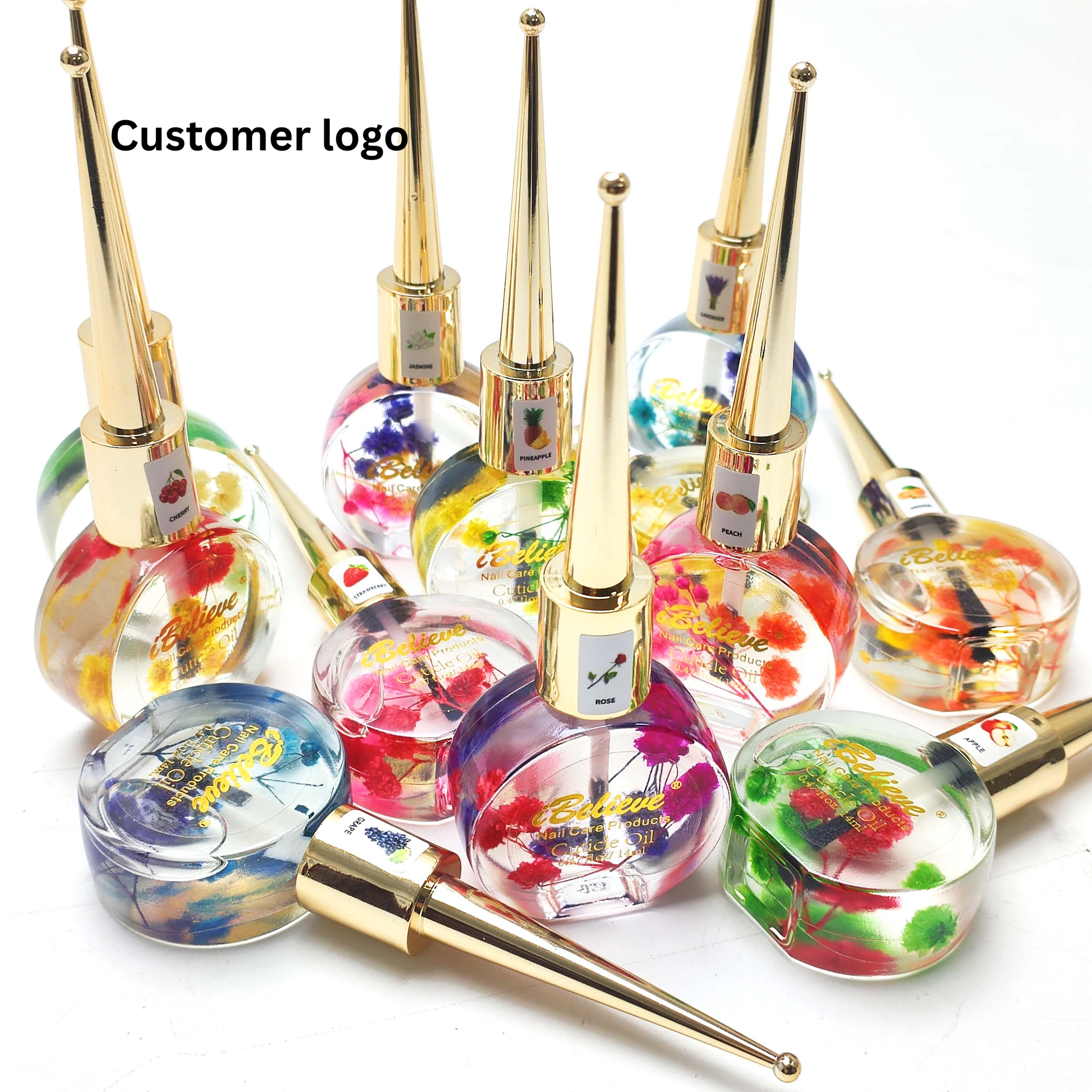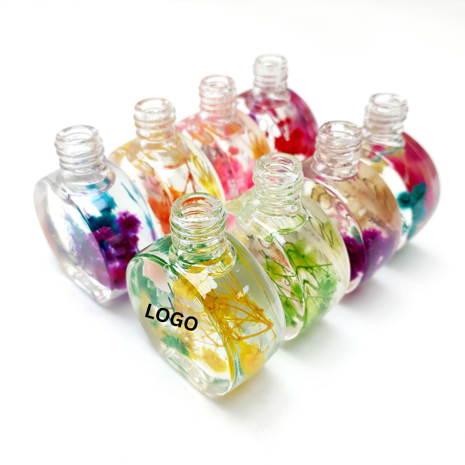 Round vased bottles with flowers inside to give it a lavishing touch for your customers. Leave a logo on the bottle to represent your salon.